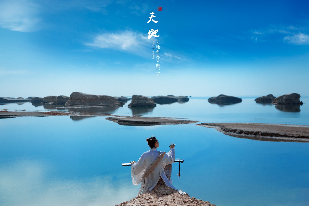 “天地有大美而不言,四时有名法而不议,万物有成理而不说”《庄子 知北游》。每当品读先贤《庄子》一书时,总仿佛置身于一片大美的天地之间,心境豁然高远而苍茫,仿佛灵魂身心都处在一种奇妙的悟道境界当中。水上魔鬼城地处茫茫的荒漠当中,当初临此地时,正应了天地大美的感觉。整个拍摄过程中自己都显得格外空灵高远,不知不觉这样的感受也在镜头中得以展现。